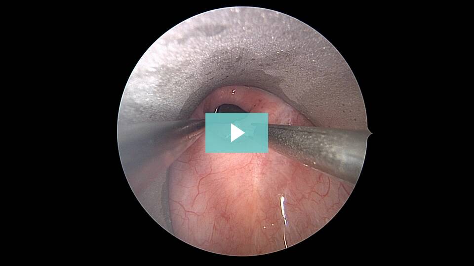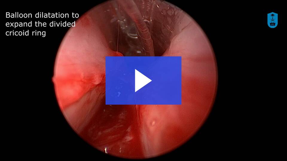 Watch the Full VideoIntroduction: Cricopharyngeal dysfunction (CPD) is a spectrum disorder encompassing multiple entities that ultimately result in dysphagia as a result of disruption of the normal anatomy or physiology of upper esophageal sphincter. It is a known and well described cause of dysphagia in adults, however, it’s role in pediatric dysphagia is less clear and limited to mostly small case series.1 Despite it’s relatively low prevalence, the complex pediatric otolaryngologist must be aware of this entity and it’s management. We discuss a complex case of CPD with an associated cricopharyngeal bar and pharyngeal diverticulum, as well as our successful endoscopic surgical approach highlighting the principles of CPD management in children. Case Presentation: We present a 21 month of female with a history of DiGeorge Syndrome and oropharyngeal dysphagia. Despite appropriate conservative measures including feeding therapy and diet thickening modification, as well as attempted Botox injection, the patient continued to demonstrate dysphagia. It was also noted on her swallow study that she had a posteriorly based pharyngeal diverticulum that potentially served as an aspiration reservoir. The decision was made to proceed with endoscopic cricopharyngeal division and diverticulum marsupialization. Technique: With the patient intubated, a Lindholm laryngoscope was placed posteriorly into the hypopharynx, elevating the larynx and allowing visualization of the upper esophageal sphincter and isolation of the cricopharyngeal bar. A non- contact CO2 laser fiber at 2W continuous spray was then used to divide the cricopharyngeal bar layer by layer making sure to isolate the muscle and not create a pharyngotomy. Standard laser safety precautions were followed. Tension was maintained using a right-angle hook allowing for optimal laser division. This was continued until the entirety of the bar was divided. At this point, the posterior pharyngeal diverticulum was identified. Again, with the use of a right angle probe for traction and depth assessment, The anterior wall of the diverticulum was divided. This was continued until the diverticulum was fully marsupialized and in continuity with the posterior pharyngeal wall into the esophageal inlet. Post operatively the patient was extubated and observed overnight in the hospital Swallow study three weeks later demonstrated normalization of the flow of bolus through the UES as well as resolution of the previously seen diverticulum. Conclusion: Cricopharyngeal Dysfunction (CPD) is an uncommon but recognized cause of pediatric dysphagia with multiple treatment options of varying success. Endoscopic CO2 laser division is a viable and effective treatment option for this condition.