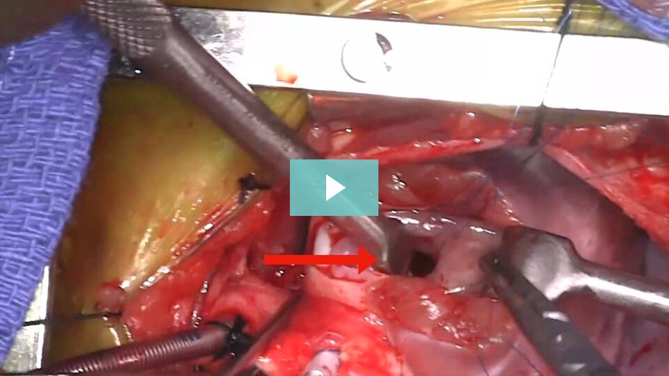 Watch the Full VideoDouble-chambered right ventricle repair for an adolescent male who presented with a subaortic perimembranous ventricular septal defect, a subaortic membrane with associated left ventricular outflow tract obstruction, and a double-chambered right ventricle. This video highlights a VSD patch closure and the surgical resection of the subaortic membrane and RVOT muscle bundles.