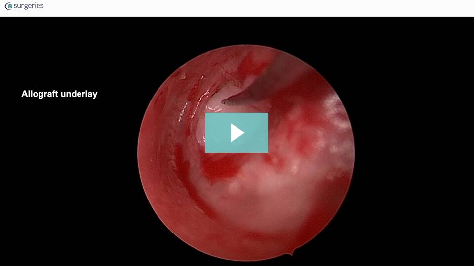 Watch the Full VideoThis video demonstrates a myringoplasty procedure using Neox RT - a human birth tissue allograft - to repair a tympanic membrane perforation in a pediatric patient. Neox RT is indicated as a wound covering for dermal ulcers or defects, but it holds further utility for myringoplasty. Birth tissue contains growth factors that stimulate epithelialization, as well as extracellular proteins that furnish scaffolding material for wound repair. These properties make it a natural and appealing option to induce tympanic membrane regeneration and healing.
